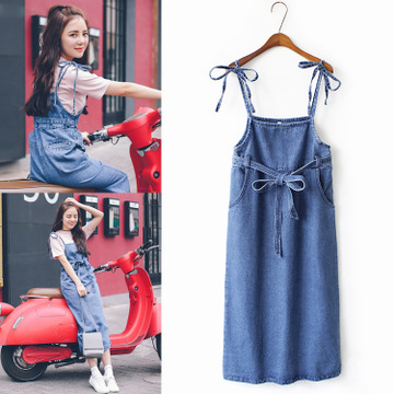 牛仔連衣裙女 韓國東大門代購夏季新款純色收腰瑚蝶結牛仔吊帶裙 /