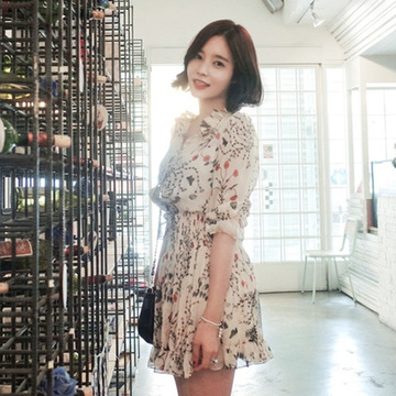 16年韓國官網(wǎng)同步夏季高檔收腰意境植物滌綸材質(zhì)好質(zhì)量中袖連衣裙 /