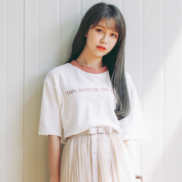 2016年韓國好質(zhì)量學院風字母刺繡圓領短袖打底上衣拼色百搭T恤女 /