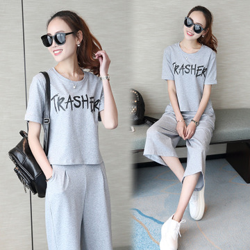 休閑套裝女夏2016新款韓版短袖上衣寬松七分闊腿褲兩件套套裝 /