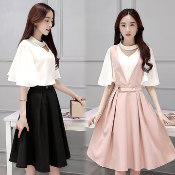 2016春夏新款韓版大碼打底吊帶連衣裙女裝兩件套裝短袖T恤背帶裙 /