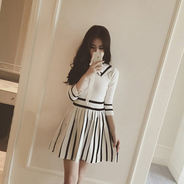 2016春裝新款女裝針織淑女連衣裙 /