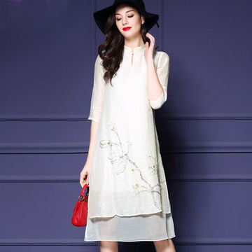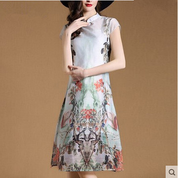 2016夏裝新款桑蠶絲裙中長款連衣裙 /