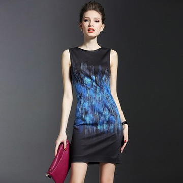 2016名媛氣質(zhì)無袖修身包臀印花連衣裙 /