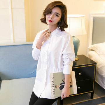 實拍2016夏季新款 插肩袖韓版圓領(lǐng)休閑寬松襯衫女 /