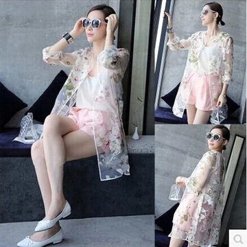 印花中長款沙灘防曬衣夏季防紫外線開衫 /