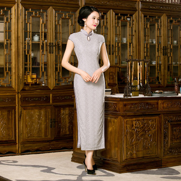 2016春季新品長(zhǎng)款復(fù)古旗袍 修身蕾絲斜襟高開衩長(zhǎng)款旗袍一件代發(fā) /