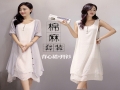 夏裝韓版大碼中長(zhǎng)款純棉打底衫白色開叉圓領(lǐng)短袖t恤裙女春潮 /