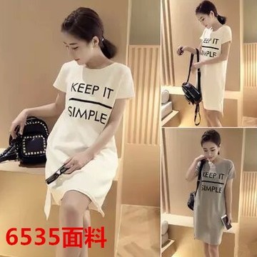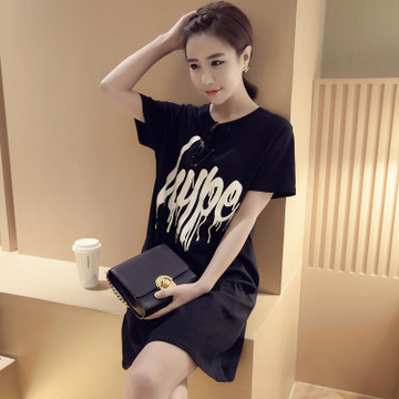 2016夏季新款韓版黑色打底衫女短袖字母中長(zhǎng)款純棉t恤衫女春裝潮 /