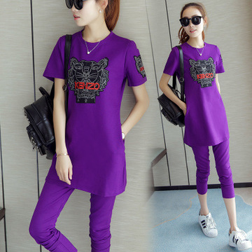 2016夏新款韓版休閑運(yùn)動(dòng)衛(wèi)衣套裝女短袖七分褲修身純棉套頭 /