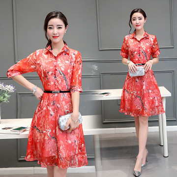 女裝春裝2016新款潮印花連衣裙襯衫 /