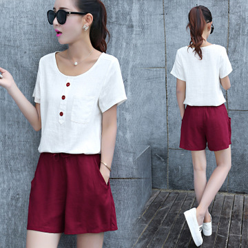 2016夏季名媛小香風休閑棉麻T恤 /