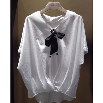 東大門2016夏裝新款時尚V領(lǐng)蝴蝶結(jié)簡約寬松蝙蝠袖 /
