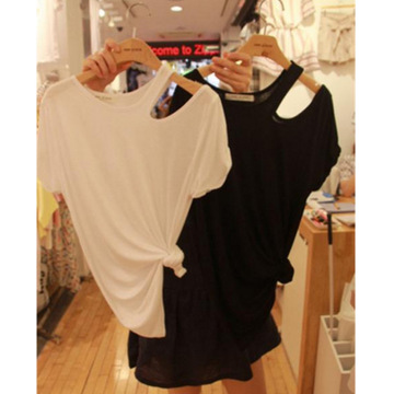 代購2016韓版純棉單邊露肩短袖t恤衫 /