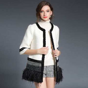 2015秋冬新款歐美大牌鴕鳥毛流蘇小香風(fēng)毛呢大衣外套女中長款I(lǐng)431 /