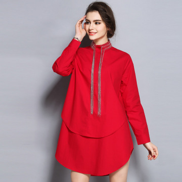 衣符邦妮 2016早春新款鑲鉆鏈條裝飾寬松A字百搭休閑襯衣裙I917 /