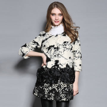 衣符邦妮2015冬新款加厚羊絨韻染蕾絲歐根紗盤花毛呢外套大衣I728 /