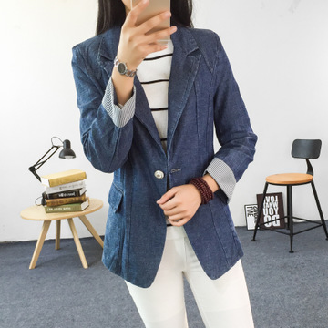 2016春秋新牛仔西裝女一粒扣顯瘦長袖水洗時(shí)尚小西裝外套一件代發(fā) /