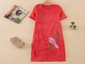 16春夏新款文藝 精美鳥兒繡花 圓領(lǐng)下開叉高端客供真絲麻 連衣裙 /