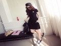2016夏季新品韓版圓領短袖系帶收腰顯瘦運動連衣裙女短裙 /