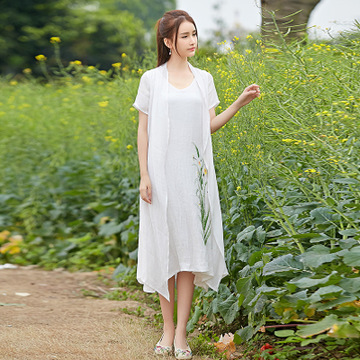 2016年夏季 民族風(fēng)文藝手繪水仙花假兩件連衣裙 /