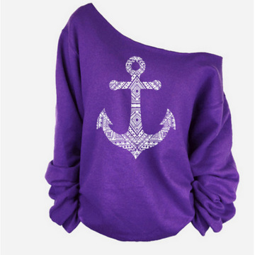 速賣通ebay新款長(zhǎng)袖春秋裝 歐美風(fēng)船錨圖案斜肩性感女裝上衣 /