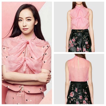 2016夏季宋茜明星同款粉色蝴蝶結(jié)無袖真絲雪紡衫背心打底上衣 /