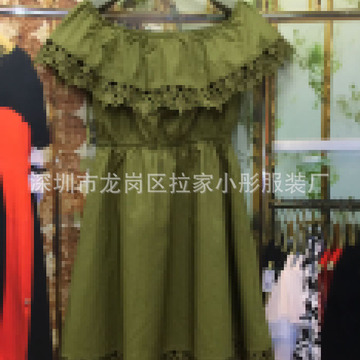 2016新女夏裝一字領(lǐng)花邊短款純棉連衣裙1HN2081220 /