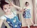 夏季新品歐美風(fēng)吊帶性感牛仔裙 紐扣印花時(shí)尚街頭連衣裙 /