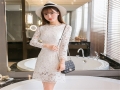 2016夏季新款韓版性感女裝修身顯瘦氣質(zhì)OL包臀鏤空蕾絲A字連衣裙 /