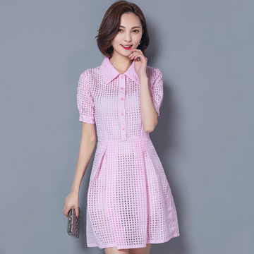 批發(fā)2016夏季新款中式純色鏤空紗網(wǎng)短裙女大擺裙修身顯瘦連衣裙潮 /