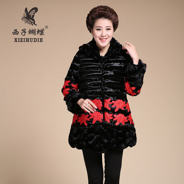 • 2015冬季新款仿貂皮大衣 加棉加絨加厚大碼繡花棉衣 一件代發(fā) /