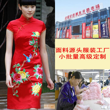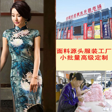 淘工廠盤扣印花絲綢旗袍女裝小批量來圖來樣貼牌加工雅格 /