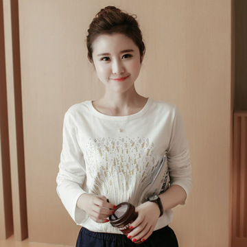 2016春季新款大碼女裝200斤 胖mm韓版印花鑲鉆T恤胖美人一件代發(fā) /