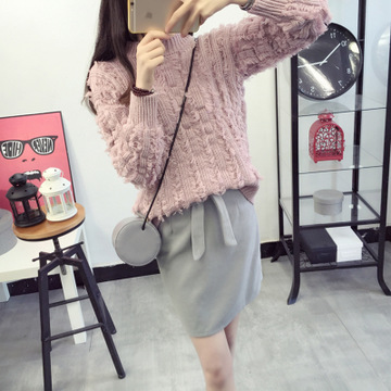 2016年春季新款女裝韓版套頭針織衫 純色圓領(lǐng)修身流蘇針織打底衫 /