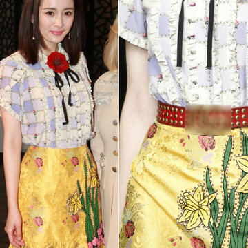 2016夏季歐美大牌女裝楊冪明星同款印花襯衫+重工刺繡短裙套裝 /