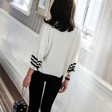 2016春夏新款 嗆口小辣椒同款 女人味燈籠袖撞色圓領(lǐng)針織衫 /