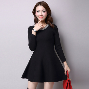2016春夏季新款連衣裙 韓版修身純色時(shí)尚圓領(lǐng)針織連衣裙女裝 /