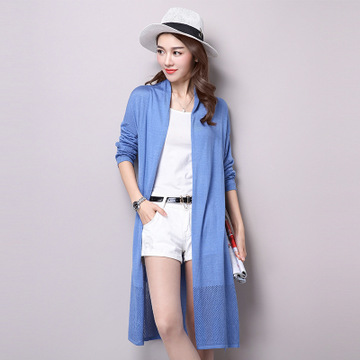 2016春夏新款 顯瘦長(zhǎng)袖薄針織衫女 防曬文藝中長(zhǎng)款寬松開(kāi)衫 批發(fā) /