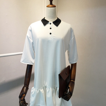 mori 夏季新款韓國(guó)原單百搭休閑翻領(lǐng)寬松蛋糕裙擺衛(wèi)衣連衣裙 女 /