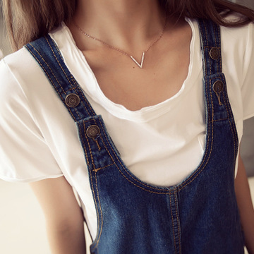 2016新款夏裝韓國寬松顯瘦潮款口袋牛仔背帶裙連衣裙 /