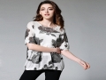 歐美潮流蝙蝠款印花夏款圓領(lǐng)針織衫女 新品中長(zhǎng)款套頭寬松罩衫薄 /