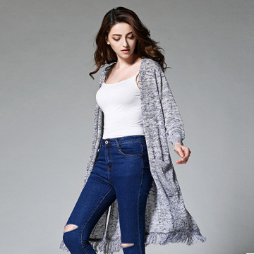 歐洲站簡(jiǎn)約百搭針織春夏開衫外搭女薄款寬松氣質(zhì)女性長(zhǎng)款流蘇外套 /