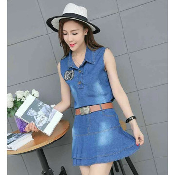 2016夏新款韓版時(shí)尚名媛修身無袖上衣+半身A字裙牛仔裙套裝 /