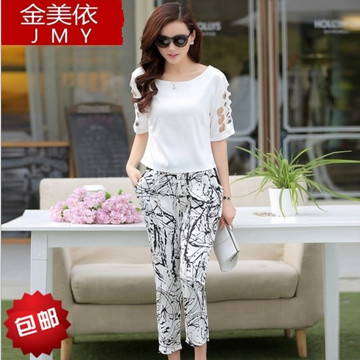 2016年夏季最新款歐美短袖T恤衫加九分褲兩件套套裝女 潮 /