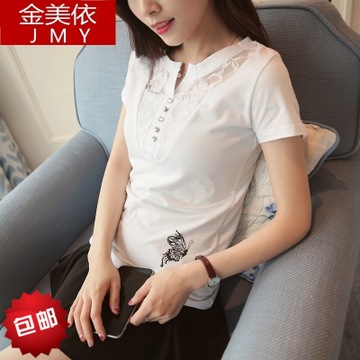 2016新款短袖t恤女 韓版女裝大碼寬松半袖蕾絲鏤空T恤夏季女上衣 /
