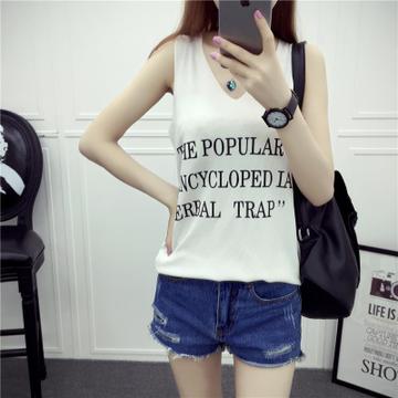 2016新款韓版夏季針織衫背心打底衫冰絲無(wú)袖V領(lǐng)印花 /