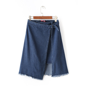 • 16夏裝新款 韓版復(fù)古開叉不規(guī)則半身裙假兩件流蘇邊牛仔包裙 /