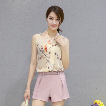 • 2016夏新小香風(fēng)時尚套裝女裝無袖上衣+短褲雪紡休閑兩件套潮 /