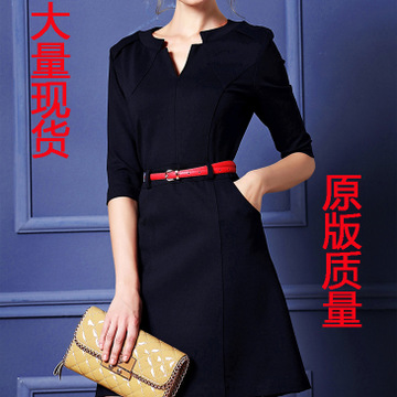 現(xiàn)貨 春裝新品2016OL通勤修身顯瘦職業(yè)裝中長款長袖連衣裙 /